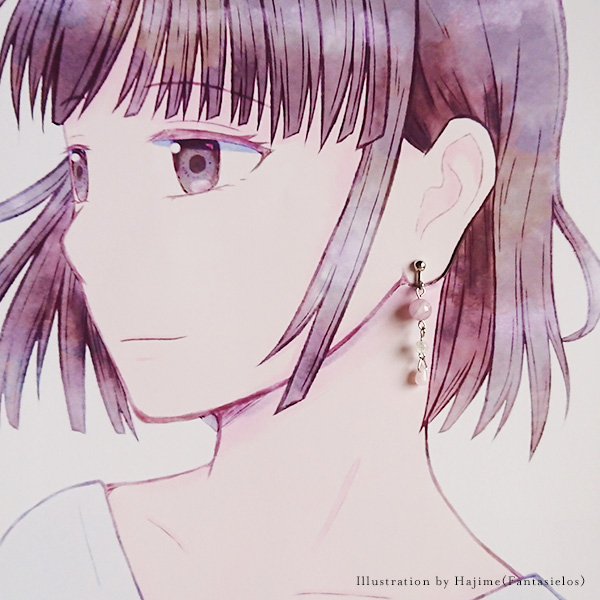一さんが描いてくれた着用画像。素敵! アイテム》クンツァイトとクラック水晶のイヤリング