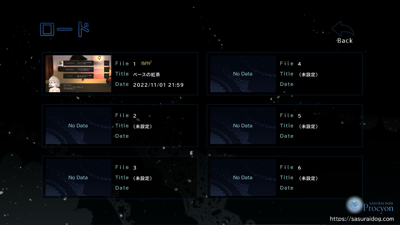 コンフィグ画面はすでに組んであった本編のものに軽く手を加えて済ませましたが、セーブロード画面は完全に組み直しました。そんなことをしているから10月末に間に合わなかったのである…。