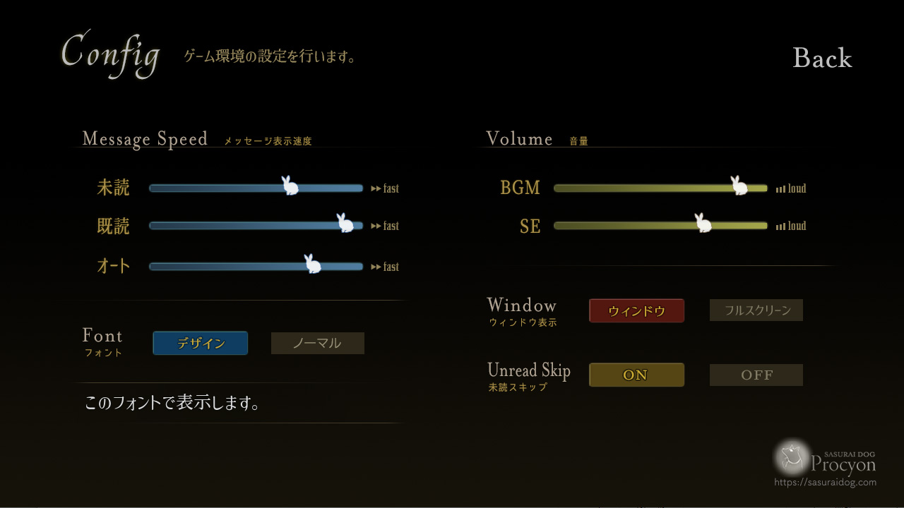 とりあえずコンフィグ画面は全項目テスト段階では正常動作してくれたので、大晦日でセーブロードの方をできるところまで進めようと思います。千里の道も一歩から…。